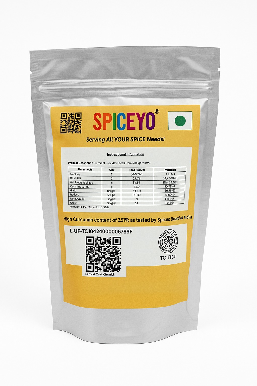 🌿 100% Pure, Natural & Organic turmeric powder certified by the Spices Board of India. Zero adulteration. Maximum flavour and health.